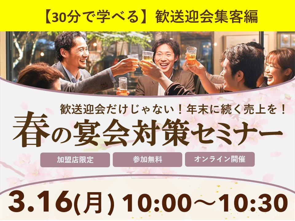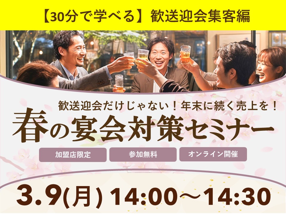 【30分で学べる】【3/9_14時開催】外してはいけない!歓送迎会集客編